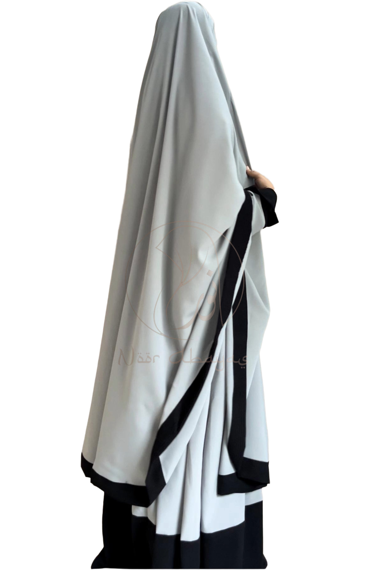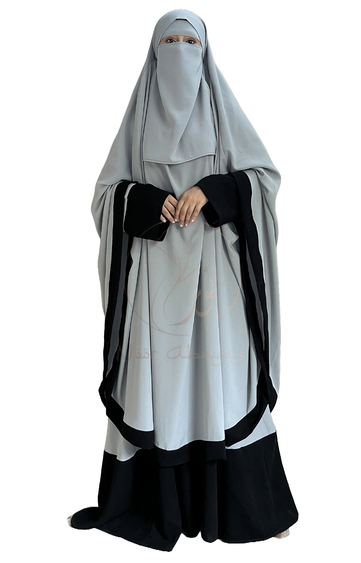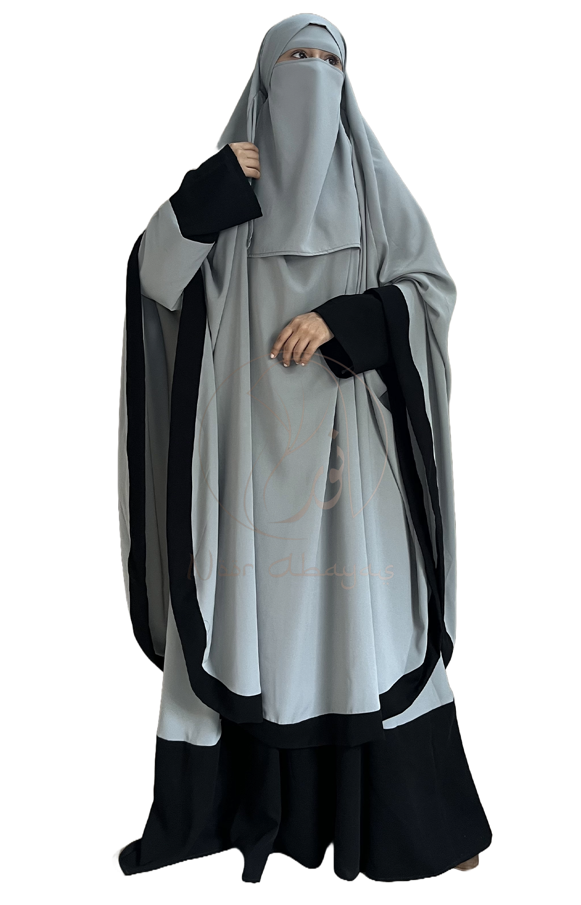 Hoor Abaya Contains Comfortable Loose Abaya Paired With a Matching Khimar And a Naqab, Perfect For Effortless Elegance And Modest Style. Hoor Abaya Is Specially Crafted In Nida Matte Fabric To Give You Comfort In All Seasons.